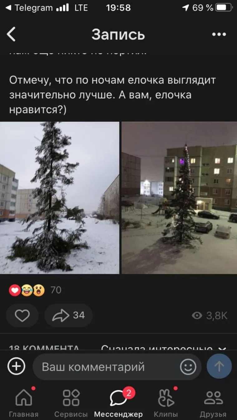 Большинству комментаторов лесная красавица тоже пришлась не по вкусу. «Это просто неуважение к людям. Нате… радуйтесь… вам и так сойдет», — написала серовчанка Инга Голубцова. «Кто-то прошлогоднюю выбросил», — предположил Иван Постников. «Елка-карантинка», — высказался Илья Марафонов. «Елочка — олицетворение наших властей», — написал пользователь под ником КПРФ Серов.