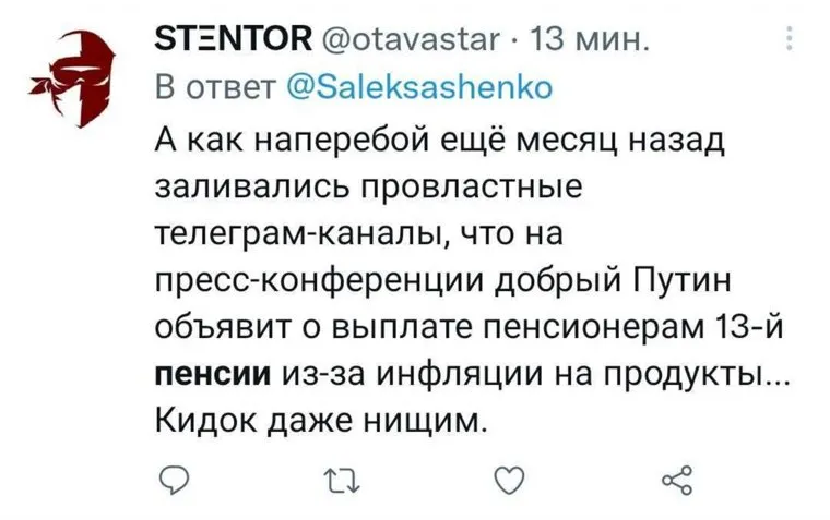 В Twitter расстроились, что россиян оставили без 13-й пенсии. «Кинули даже нищих»