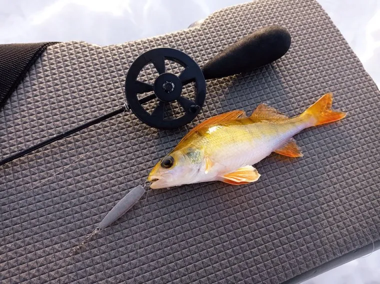 Артем Емелев из Тюмени смог поймать на озере Песьяном редкую рыбу — золотого окуня. Об этом мужчина рассказал на своей странице в социальной сети.