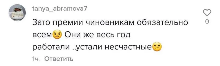 В TikTok разозлились из-за новогодних премий чиновникам. «А то с голоду умирают»