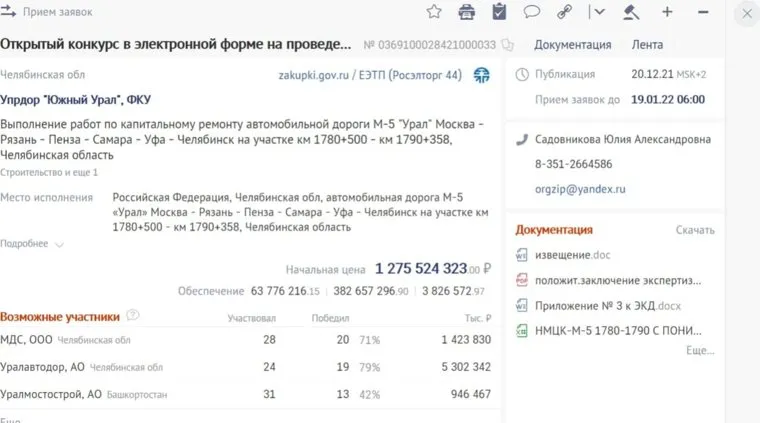 Заявки на участие в конкурсе дорожное агентство принимает до 19 января. Среди потенциальных участников конкурса система СБИС называет компании ООО «МДС», АО «Уралавтодор» и «Уралмостострой».