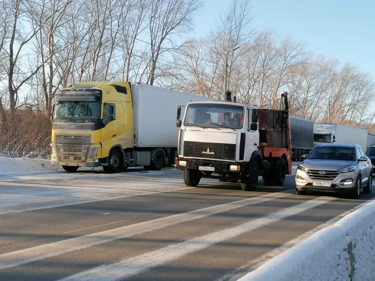 Скопление грузовиков мешает передвигаться жителям Копейска и его окрестностей