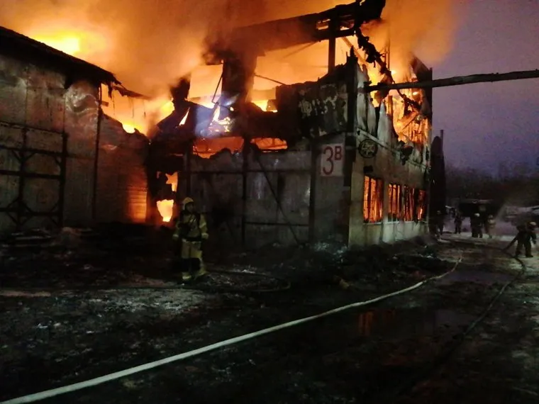 В Екатеринбурге сгорел автосервис. Фото, видео