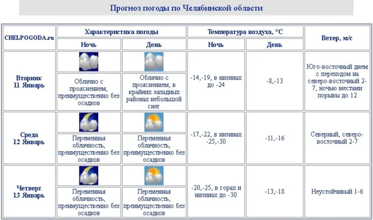 «В ночь на 11 января температура в Челябинской области опустится до минус 19-24 градусов. В последующие ночи — 12 и 13 января — будет еще холоднее. Термометры будут показывать минус 22-25, а в горах и низинах до минус 30 градусов. Ветер будет дуть со скоростью до 6-7 метров в секунду, отдельные порывы будут достигать 12 метров в секунду», — сообщили URA.RU в челябинском ЦГМС.