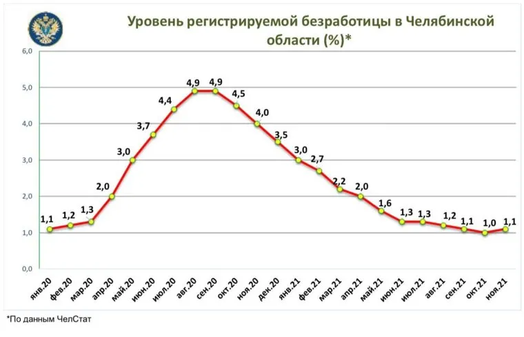 Согласно экспресс-анализу Счетной платы, к декабрю прошлого года безработица в Челябинской области снизилась и остается на доковидном уровне. С момента выхода на пиковые значения в августе—сентябре 2020 года регистрируемая безработица в Челябинской области сократилась более чем в четыре раза. К концу ноября 2021 года она составила 1,1%, вернувшись к показателям января 2020 года, добавили в КСП.