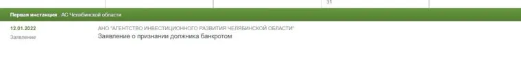Челябинская правительственная структура хочет стать банкротом. Скрин