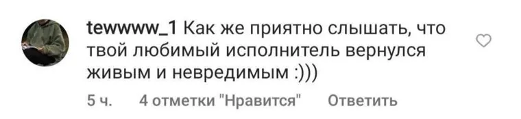 Некоторые фолловеры посчитали, что Шарлот таким образом попытался привлечь внимание: «Классное привлечение внимания было». Кто-то, наоборот, обрадовался, что с певцом все в порядке и он жив. Некоторые подписчики всерьез восприняли раннюю сториз Шарлота.