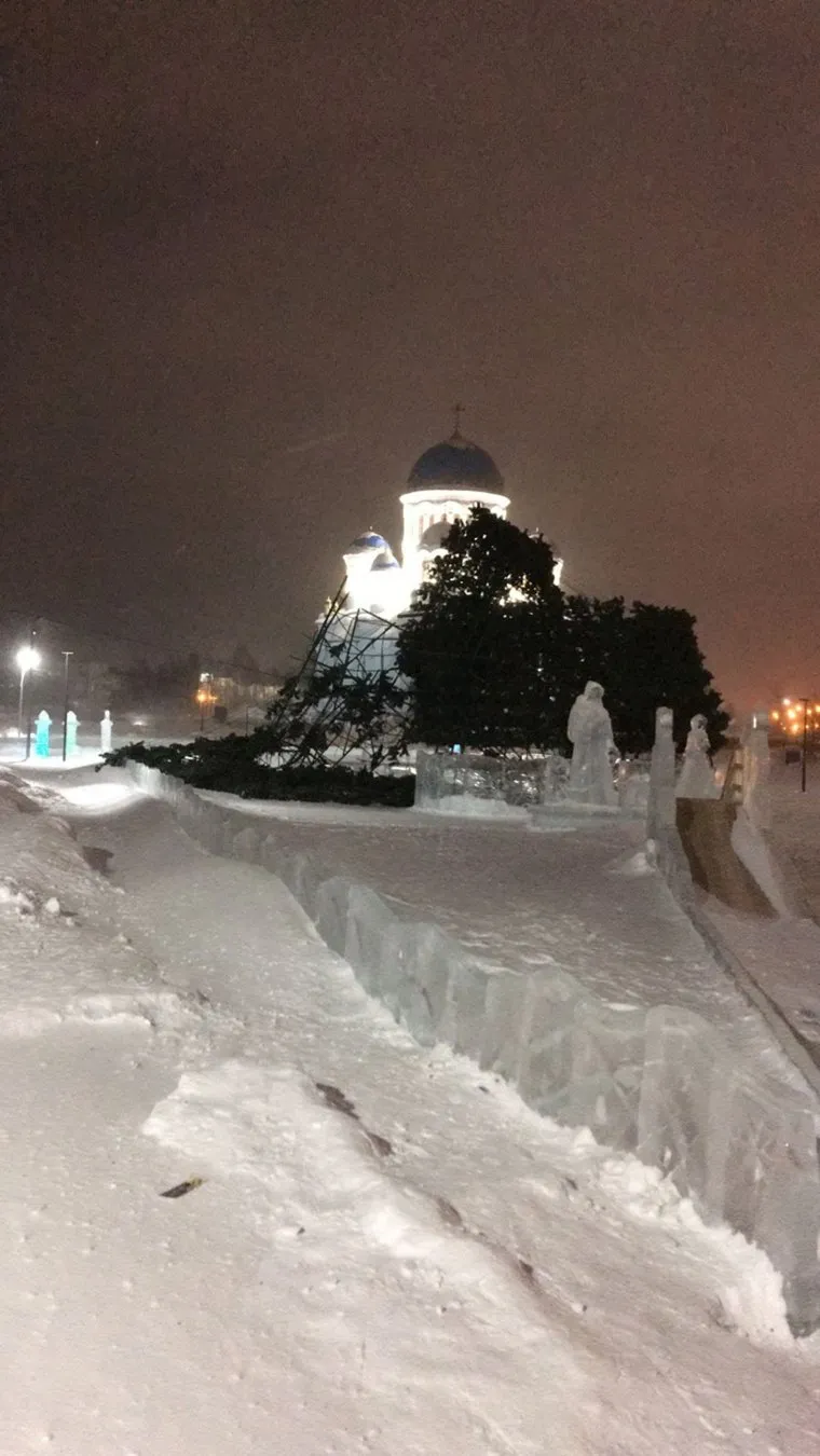 В Сургуте ураганный ветер повалил новогодние елки. Фото