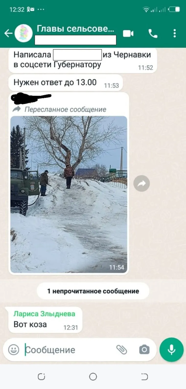 «Просила по осени сделать детскую площадку, ничего. Просила сделать зимой каток. Правительство отвечает, что сельсовет провел опрос и выяснилось, что каток не нужен. С горем пополам сделали горку деревянную, но ее не залили. Она простояла все каникулы. Пишу губернатору опять, залейте. Днем залили. И в итоге в чате глав сельсоветов обсуждают, что я пожаловалась Вадиму Шумкову, а Злыднева написала „Вот коза“. Какое она имеет право меня оскорблять», — рассказала Анна.
