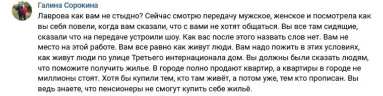 Горожане назвали «позором» эфир с участием Ольги Лавровой и ее подчиненных