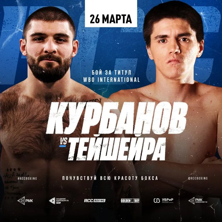 «26 марта боксер Академии единоборств РМК Магомед Курбанов проведет бой против бразильца Патрика Тейшейры в Екатеринбурге. На кону будет стоять титул WBO International», — говорится в сообщении RCC Boxing Promotions.