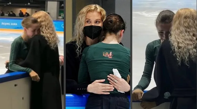 На кадрах, которые публикует telegram-канал «Пул N3», спортсменка, представляющая Россию на Олимпиаде в Пекине, приостановила тренировку из-за слез. Она подъехала к бортику и плакала в объятиях тренера Этери Тутберидзе.