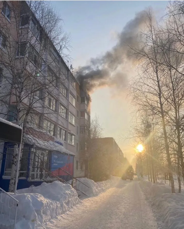 В ЯНАО загорелся жилой пятиэтажный дом. Фото