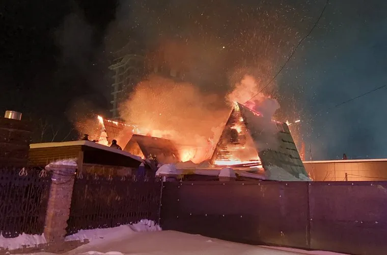 В центре Тюмени сгорело здание бывшего пивного ресторана Erdinger