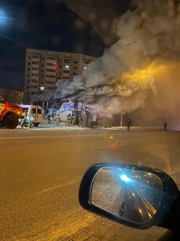 Очевидцы засняли момент пожара в ресторане быстрого питания «Донер Кебаб» на окраине Тюмени