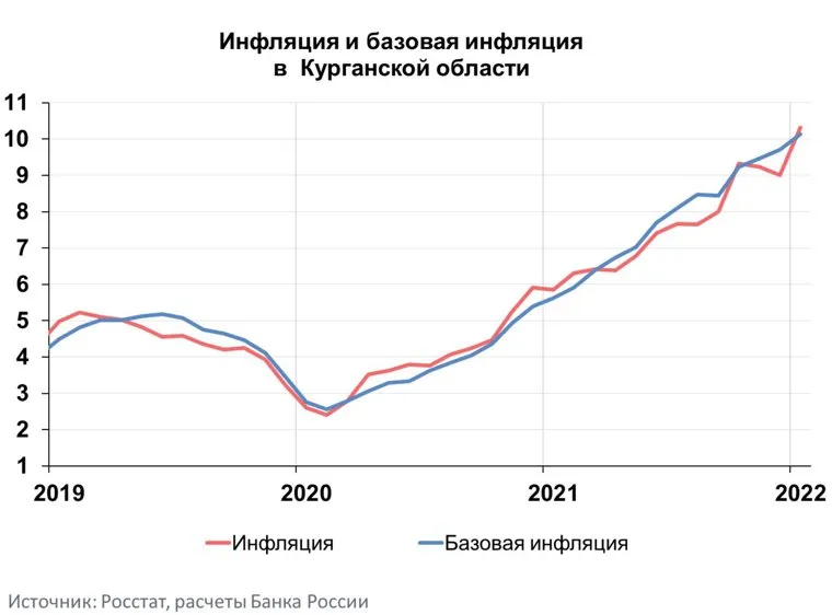 «Годовая инфляция в Курганской области в январе 2022 года ускорилась до 10,31% после 9,01% в декабре 2021 года. Это выше, чем по Уральскому федеральному округу (7,16%) и по России в целом (8,73%)», — указано на сайте регионального отделения ЦБ.