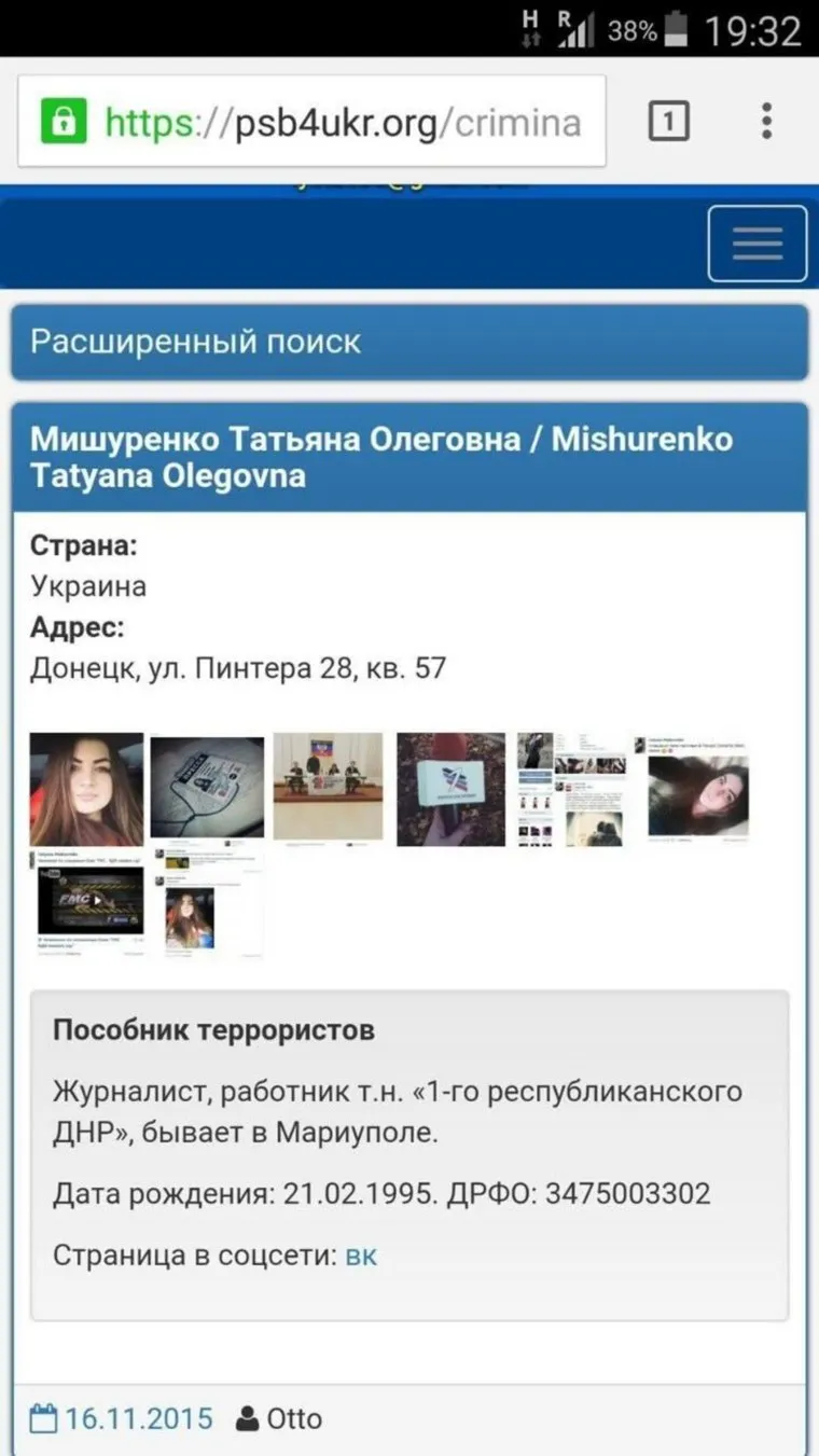 Татьяна тогда училась на факультете журналистики Донецкого национального университета, практику проходила на местном ТВ и это стало основанием, чтобы сторонники националистов записали ее в «пособники террористов». «Только потому, что я хотела работать по специальности, я оказалась врагом Украины — меня „слил“ кто-то из приверженцев украинской власти. Мой мир изменился — теперь я могла жить только в ДНР или России: если бы я попыталась въехать на Украину меня бы посадили. Но это лишь побудило во мне желание рассказывать правду о происходящем в Донецке и Луганске», — рассказывает журналист.