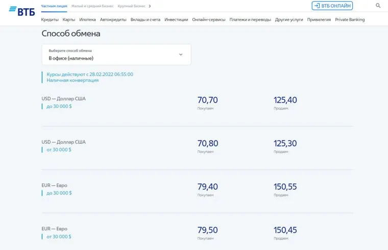 Ранее курс доллара в российских банках превысил 100 рублей за единицу после начала российской спецоперации на Украине. В некоторых кредитных организациях его продавали за 110,48 рубля. Евро также резко подорожал, дойдя до отметки в 131,07 рубля, побив рекорд декабря 2014 года. Центробанк РФ начал валютные интервенции для стабилизации ситуации на финансовом рынке, передает « Национальная служба новостей ». 25 февраля регулятор понизил курс доллара до 83,55 рубля. Курс евро составлял 93,6 рубля.