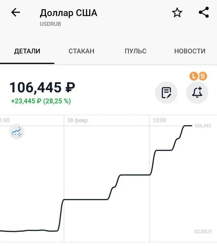 - Свидомый28 февраля 2022 18:15С 1 марта вступают в силу санкции в отношении Центробанка РФ. Похоже что наступит гиперинфляция как 1992-м году, после павловской реформы, когда при зарплате 200 советских рублей джинсы сразу стали стоить 2000 руб, а подержанные Жигули *копейка* 100.000 руб . Очень не хочется в это верить.