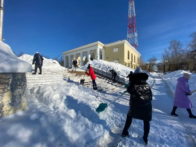 В Пермском крае мэр отправил своих подчиненных на уборку снега. Фото