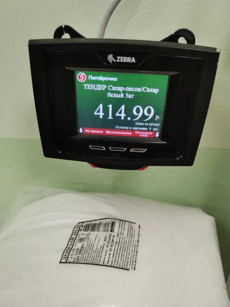 «В магазине „Пятерочка“ 14 марта цена пяти килограмм сахара составляла 345,99 рубля. 15 марта проверил, чуть подорожал пакет [сахара], стоит 359,99 рубля. 18 марта цена — 414,99 руб», — делится корреспондент агентства.