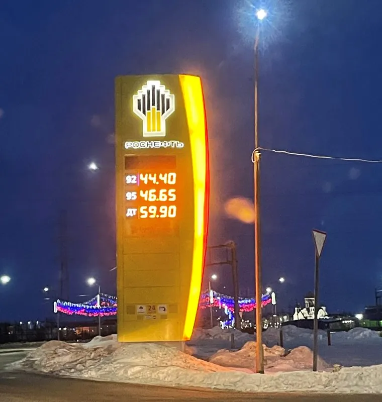 «Сейчас цена бензина на одной из АЗС „Роснефти“ составляет: 44,40 рублей за АИ — 92, стоимость АИ — 95 составляет 46,65 рублей. Дизельное топливо стоит 59,90 рублей», — сообщает журналист агентства.