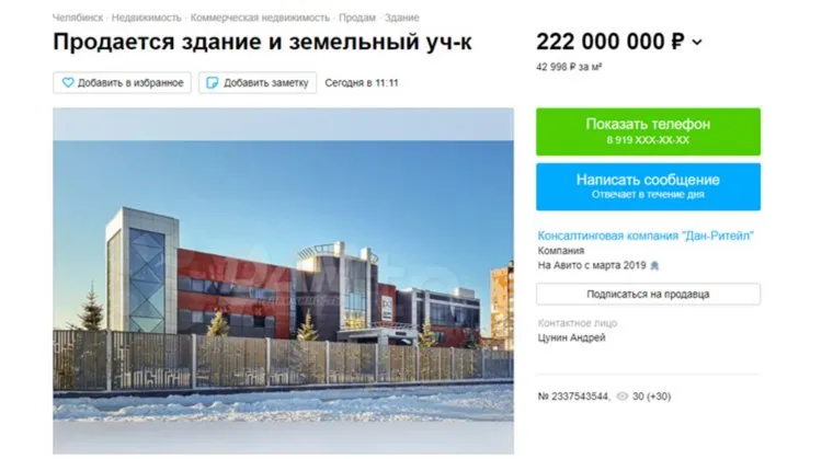 Цену продажи SPA-центра обновили 21 марта. Описание осталось прежним. Продавец также предлагает здание с отличным ремонтом и современным оборудованием, которое подойдет для медицинского центра, центра косметологии, семейного развлекательного центра, но уже на 28 млн рублей дороже.