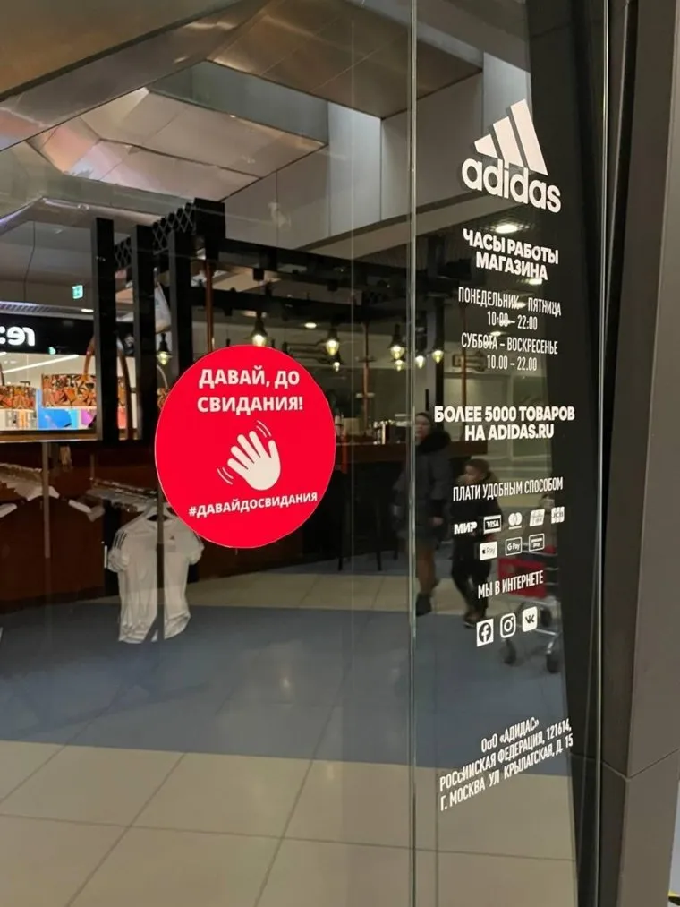 В торговом центре «Родник» в Челябинске на закрывшихся салонах Zara, Adidas появились красные наклейки «Давай, до свидания!». Об этом URA.RU сообщили читатели.