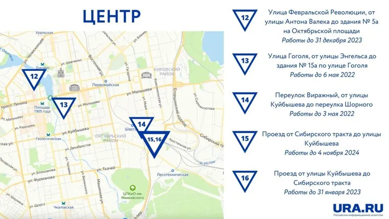 Какие дороги перекрыты в Екатеринбурге. Карта, список