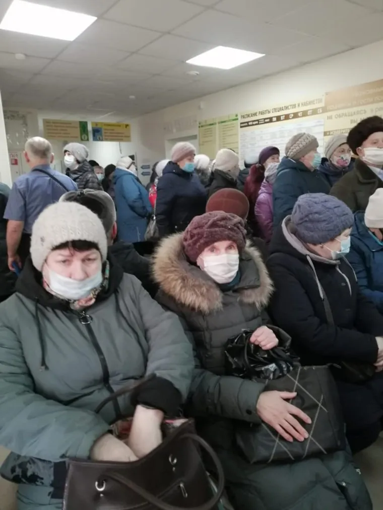 В поликлинику под Тюменью выстроилась очередь из пенсионеров. Фото