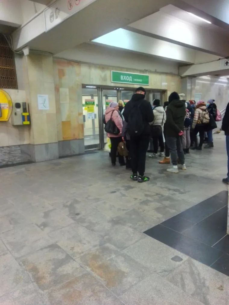 «На станции закрыли вход и выход», — сообщил подписчик. Он прислал фотографию, на которой видно, как пассажиры не могут выйти со станции метро.