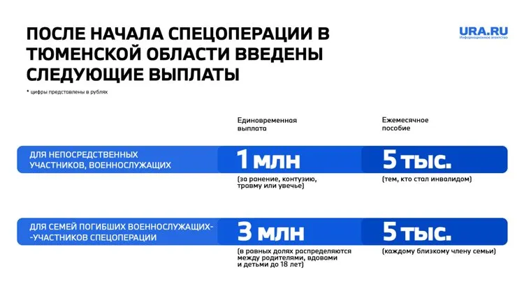 Какие выплаты в Тюмени дадут участникам спецоперации и их семьям. Инфографика