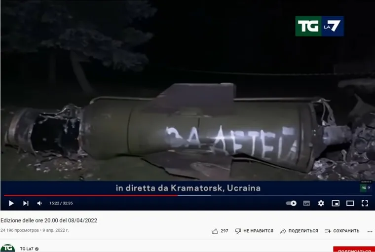 Скриншот номера ракеты взят с youtube-канала итальянского телеканала TG La7