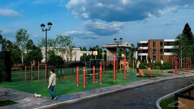 В спортивной зоне планируют разместить брусья, силовые тренажеры и площадку для игровых видов спорта