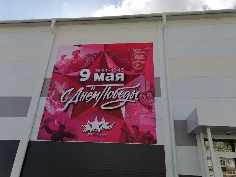 «Ледовый дворец в поселке Винзили украсили вот таким баннером к Дню Победы! Предки от стыда в гробу перевернулись», — такой пост появился в группе «Столичный | Тюменский район» в социальной сети «ВКонтакте».