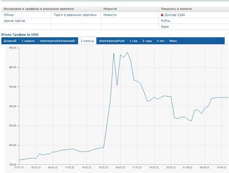 График в долларах США за тонну угля