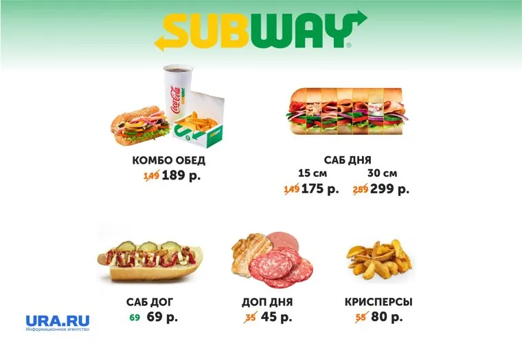 «Если сравнивать со старыми чеками, 15-сантиметровый сэндвич дня подорожал со 149 до 175 рублей. Комбо обед ( входит сэндвич и напиток, прим. URA.RU ) стал дороже на 40 рублей — раньше стоил 149, сейчас обойдется в 189 рублей», — передает корреспондент агентства.