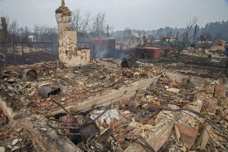 В дачном поселке «Малиновка», в котором сгорело 55 домов, начали оказывать помощь пострадавшим