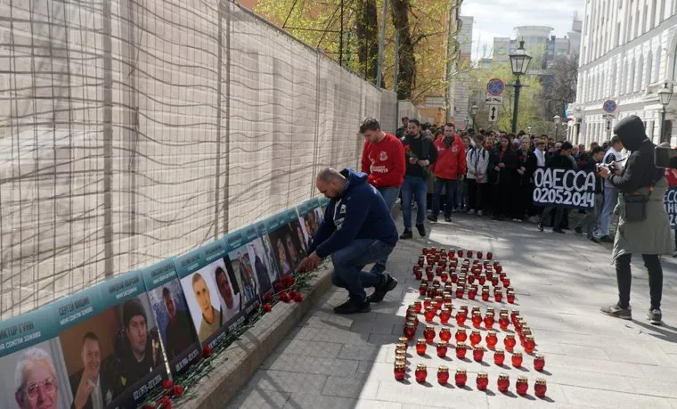 «Сегодня более 2 тысяч наших активистов пришло к посольству Украины, чтобы почтить память невинно убитых людей в Одессе 2 мая 2014 года. Ежегодно с 2015 года мы проводим эту акцию», — сказал Демидов, сообщается на сайте МГЕР. По словам председателя МГЕР, активисты ежегодно приходят к посольствам и консульствам Украины, выкладывают свечами слово «Помним» и возлагают цветы. Он заявил, что виновные в смерти 48 человек должны быть наказаны.