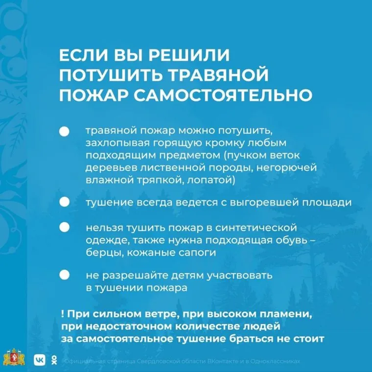 Региональный департамент информационной политики разработал памятку, объясняющую как не спровоцировать пожар и как его потушить. В связи с особым противопожарным режимом, действующем в регионе, запрещается использование открытого огня, сжигание мусора, проведение пожароопасных работ и еще ряд других мер. За майские праздники сотрудники ведомства оштрафовали 155 нарушителей пожарной безопасности.