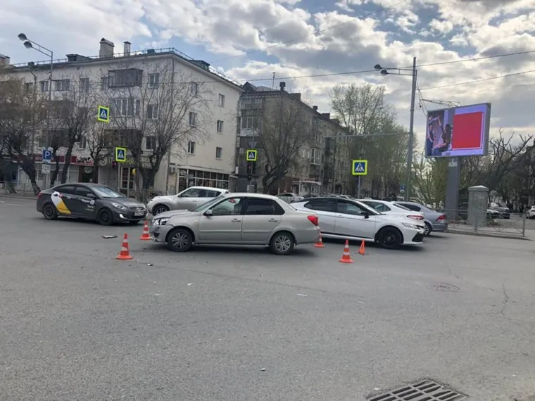 Двойное ДТП произошло на перекрестке центральных улиц Тюмени Орджоникидзе — Герцена