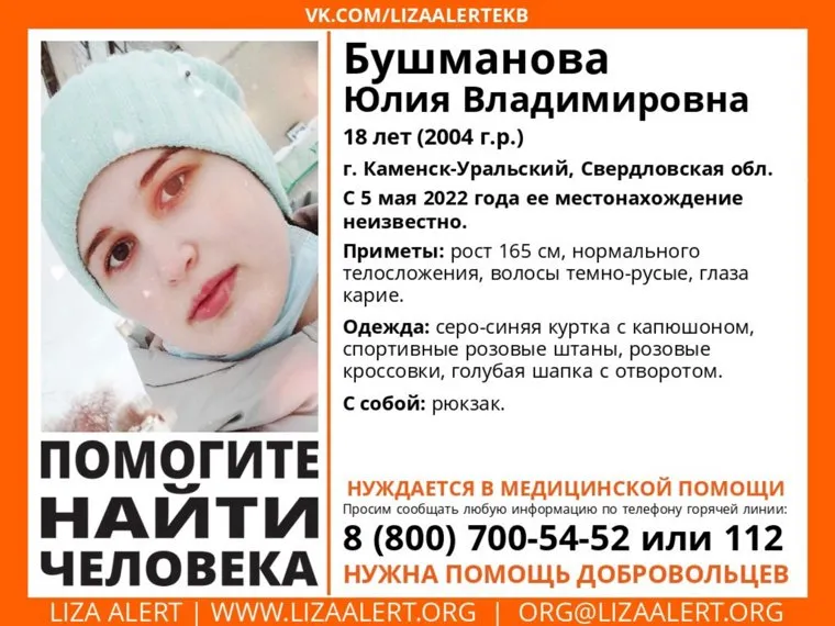 К поискам Юлии Бушмановой присоединились волонтеры из поискового отряда «ЛизаАлерт». Всех, кому что-либо известно о местонахождении девушки, просят звонить по указанным ниже телефонам.