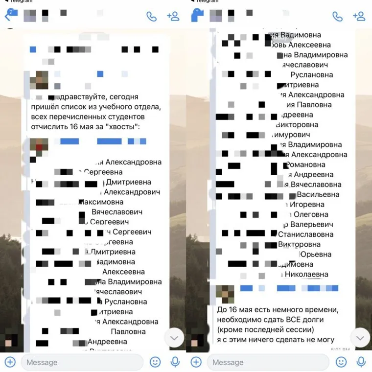 «Сегодня пришел список из учебного отдела. Всех перечисленных студентов отчислить 16 мая за „хвосты“», — рассказал студент на условиях анонимности.