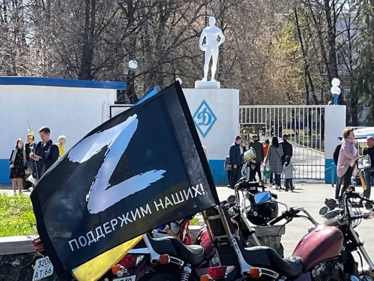«Некоторые из байкеров привезли с собой большие флаги России, на которых нарисована буква Z и лозунг „Своих не бросаем“. Эти флаги мотоциклисты прикрепили к своим байкам», — рассказал корреспондент URA.RU, находящийся на открытии мотосезона.