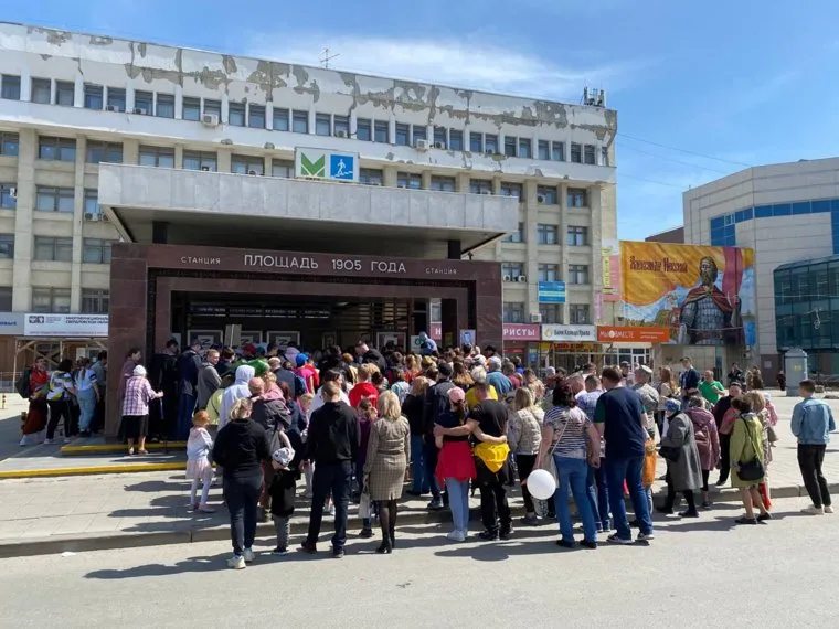 12:15 На станции метро «Площадь 1905 года» пассажиров запускают партиями из-за слишком большого скопления людей, сообщают читатели URA.RU.