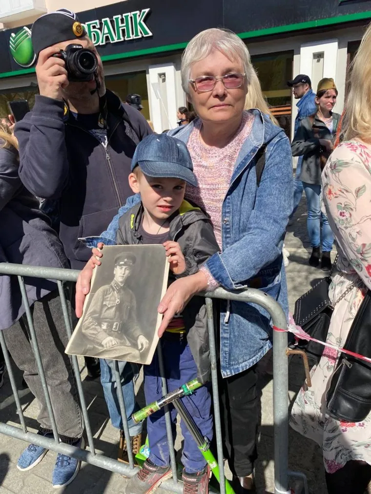 Дмитрий Махонин в колонне «Бессмертного полка» с портретом деда-фронтовика