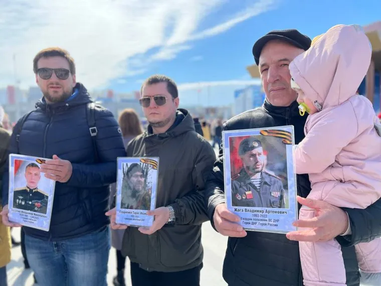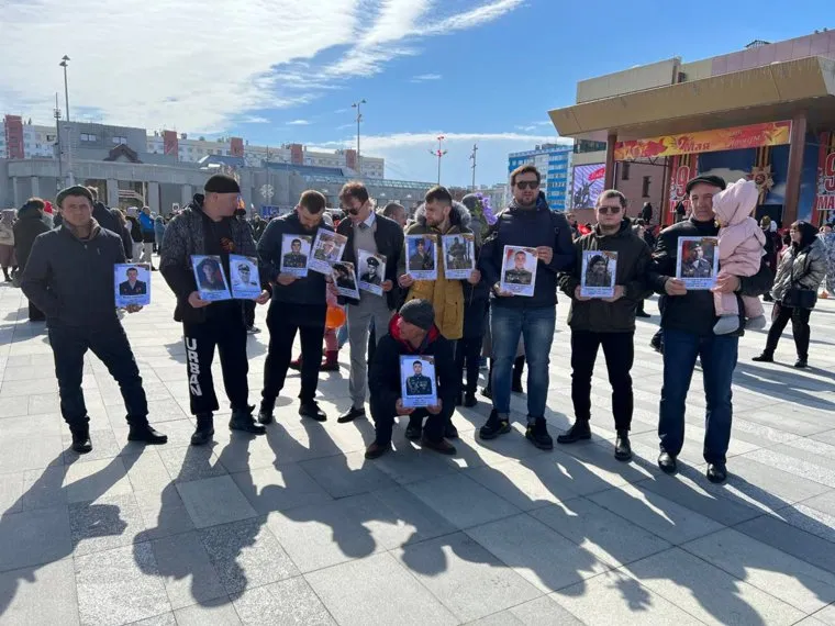 12:13 В Бессмертном полку Нового Уренгоя горожане пронесли портреты российских военных, погибших на Украине
