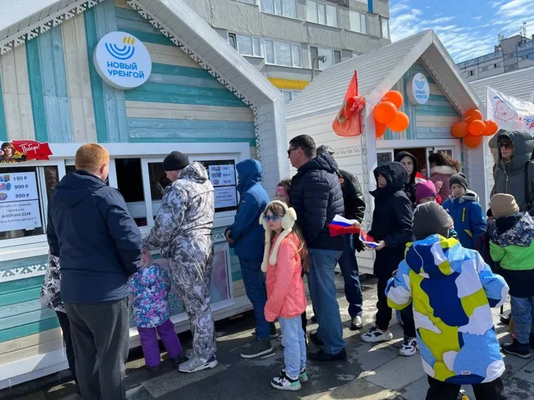14:10 В Новом Уренгое тем временем торжественная часть подошла к концу. Горожане семьями гуляют по городу, пользуясь хорошей погодой