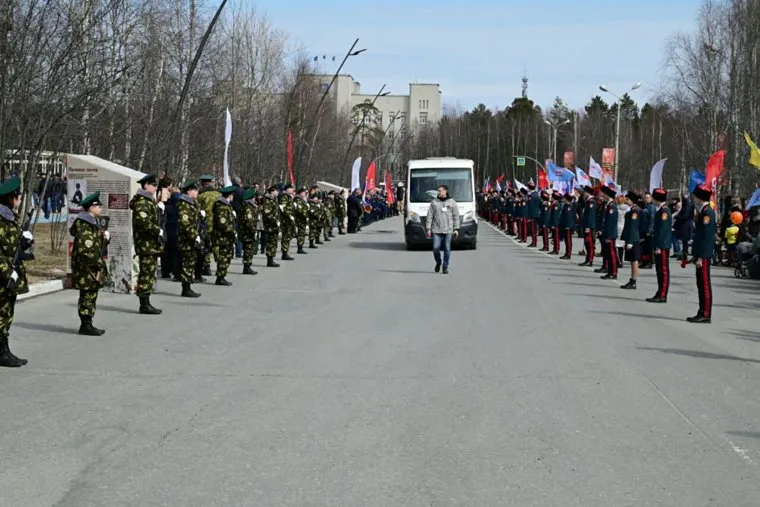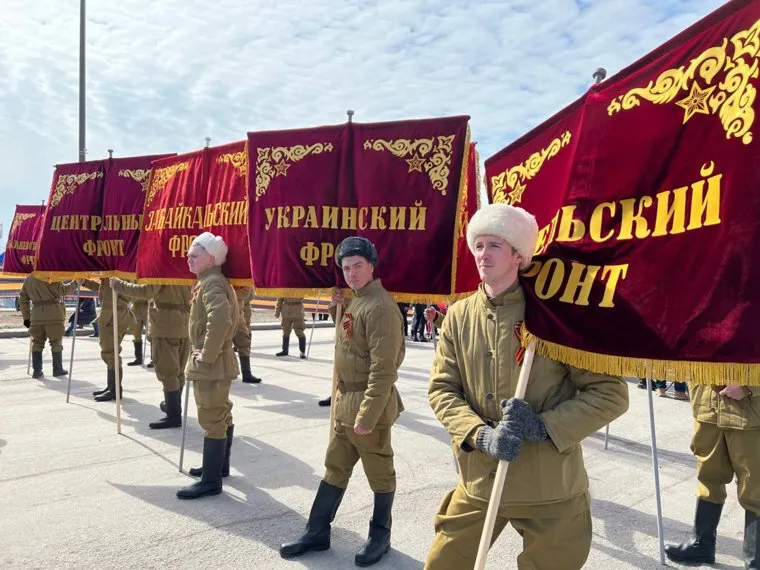 11:14 В Новом Уренгое в колоннах несут исторические штандарты фронтов Красной Армии