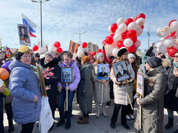 11:36 Жители Нового Уренгоя проносят в Бессмертном полку портреты своих родных — участников войны
